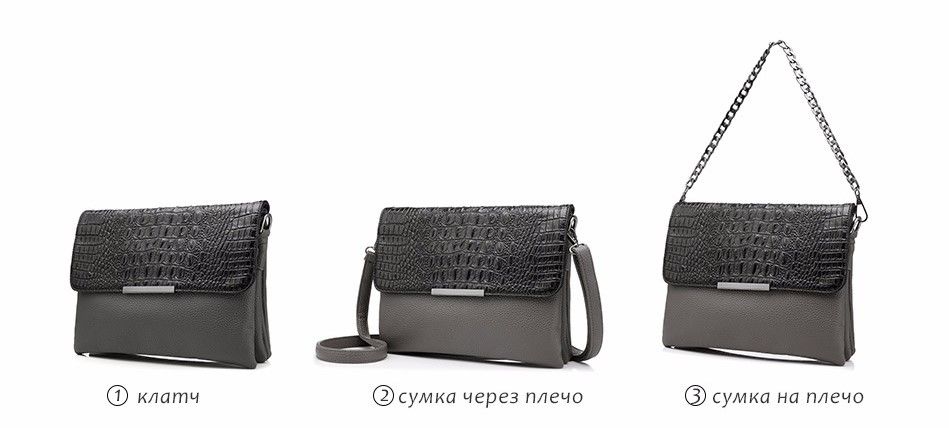 Женская мягкая сумка из искусственной кожи, застегивается на молнию и крышку-клапан на магните, имеет цепочку (21 см) и ремешок (до 66 см) в комплекте. Размеры: длина - 27 см, ширина - 6 см, высота - 20 см. Производство - Китай.