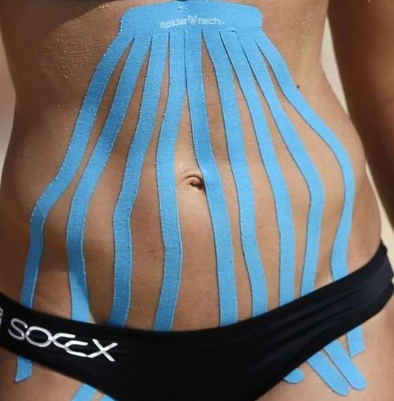 Кинезиотейпы крепятся к телу, его можно носить от двух дней до пары недель