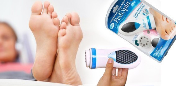 Удалить мозоли и жесткие наросты на пятках, ступнях и пальцах ног в домашних условиях теперь вы можете при помощи своего персонального помощника — Pedi Spin. Принцип работы аппарата заключается в наличии вращающейся насадки со множеством микронапильников из нержавеющей стали, которые достаточно прочны, чтобы полировать огрубевшую и неподатливую кожу стоп, и в то же время достаточно нежны, чтобы не поранить даже самые чувствительные участки.