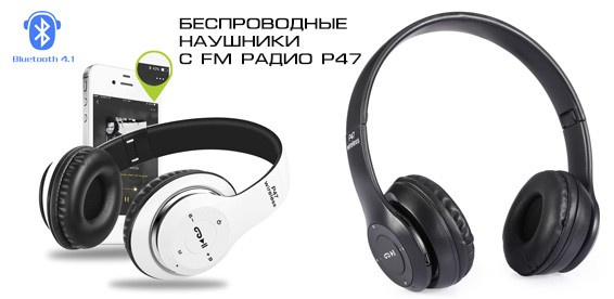 Беспроводные наушники с FM радио P47 Купон 360 р. + доплата 1190 р. вместо 3100р (скидка 50%) |