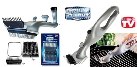 Grill Daddy это отличная щетка для мытья гриль кисти. Вы заполняете его водой и часть жидкости капает с головы Grill Daddy, которая имеет металлическую щетину и именно это заставляет Вас не придавать много усилий чтобы очистить Ваш гриль от гари. В результате получается гораздо проще и более эффективнее.