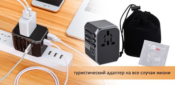Универсальный туристический адаптер. Помощник в любом путешествии! Купон за 340 р. + доплата 1350 р. вместо 3800 р., скидка 55% |