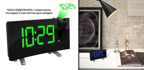 Настольные светодиодные часы-будильник с проектором, FM-радио и USB-портом для зарядки. Купон за 390 р. + доплата 1790 р. вместо 4390 р., скидка 50%. |
