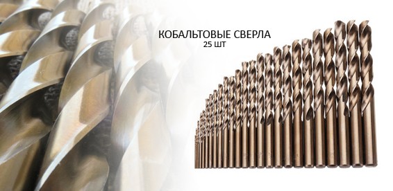 Кобальтовые сверла 25 шт. Купон за 200 р. + доплата 1950 р. вместо 4500 р., скидка 52%. |