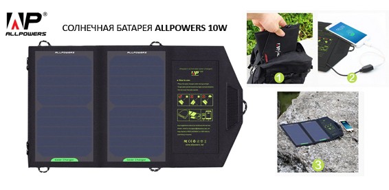 Солнечная батарея ALLPOWERS 10W. Купон за 300 р. + доплата 2190 р. вместо 5900 р., скидка 58%. |