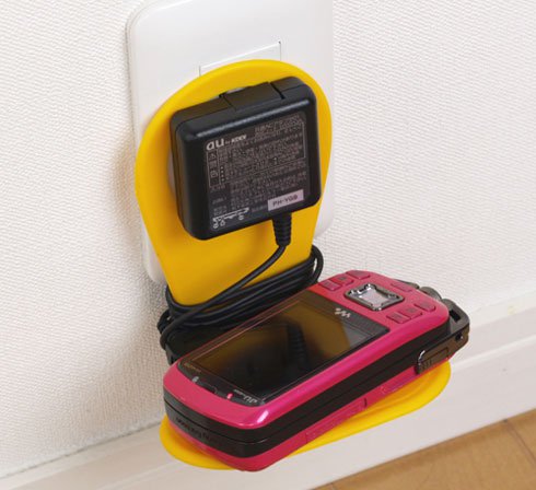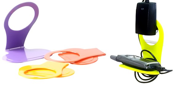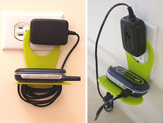 При зарядке мобильного телефона, особенно если розетка расположена далеко от стола, мы всегда сталкиваемся с проблемой, куда положить телефон так, чтобы при этом шнур зарядного устройства нам не мешал. Персональная полка для вашего мобильного телефона готова! Для использования этого гаджета вам достаточно обмотать шнур зарядного устройства вокруг основания и вставить вилку через отверстие в розетку.