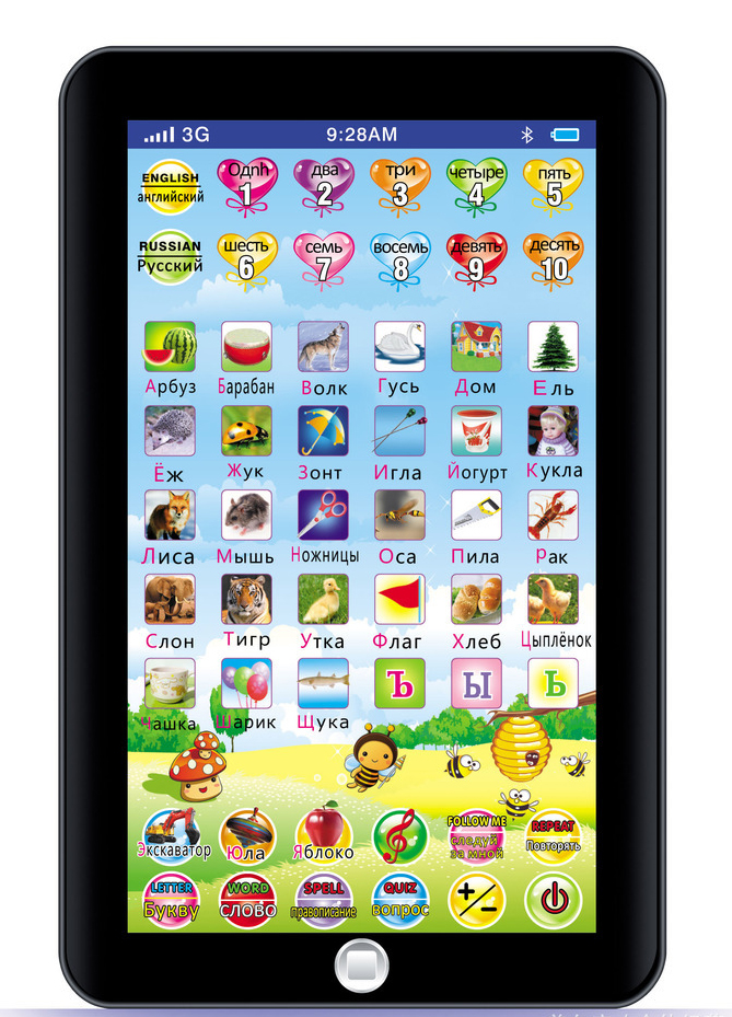 Что подарить ребенку на день рождения, когда ему исполняется два-три годика? Конечно, можно ограничиться лакомствами, позабавить малыша задуванием свечек и купить ему что-нибудь из одежды. Гости наверняка принесут кучу игрушек, и опять будет некуда складывать огромных мягких слонов и зайцев. Но есть другой вариант, который наверняка доставит вашему маленькому сорванцу гораздо больше удовольствия, чем очередная плюшевая зверюшка. Детский развивающий планшет Y pad (на русском языке) будет его первым компьютером, совершенно безвредным и очень увлекательным товарищем по играм! Обучающий интерактивный планшет был придуман и разработан специально для детей от 2 до 4 лет, чтобы скрасить досуг малышей и немножко освободить взрослых. Вручив ребенку новую игрушку Y pad mini, можно будет слегка ослабить бдительность — малыш наверняка будет увлечен исследованием его яркого, интересного меню и общением с подсказчиком в заданиях.