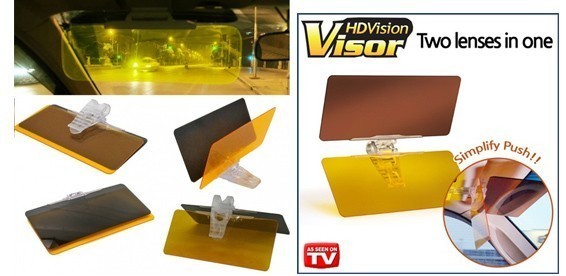 Желтая створка солнцезащитного козырька HD Vision Visor не пропускает блики встречных фар в ночное время на 72%. Рассеивающая технология не только убирает блики встречных автомобилей, но и ваших фар. Так видимость на дороге с солнцезащитным козырьком HD Vision Visor увеличивается на 43%. К тому же желтая створка предназначена для езды в плохие погодные условия: снег, дождь, туман. Особое покрытие придает контрастность картинке за лобовым стеклом и четкость, убирая размытость дороги при ливнях и дымке.
