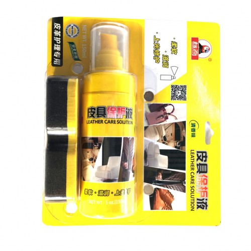 В упаковке содержится средство для ухода за кожаными изделиями объемом 150 мл и губка для чистки кожи.