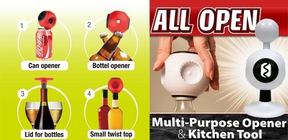 Открывалка универсальная со штопором Perfect Opener 8-в-1 - справится с открываем любых консервных банок и бутылок, из какого бы материала они не были сделаны. Консервный нож 8 в 1 Perfect Opener - очень удобная универсальная механическая открывашка для открывания любых консервных банок. Открывает стеклянные и консервные банки, легко справляется с различными пробками, в том числе и с пластмассовыми.